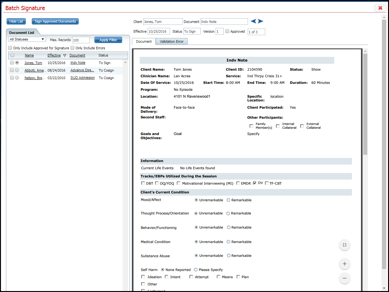 After you have approved the documents you want to sign, click the Sign Approved Documents button.