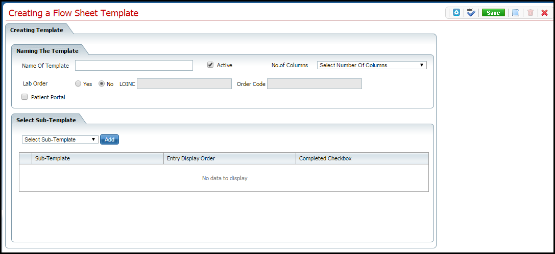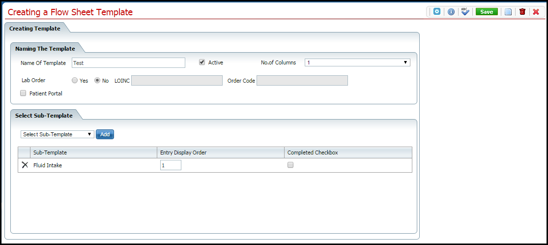 The Creating a Flow Sheet Template page is displayed. View field definitions.