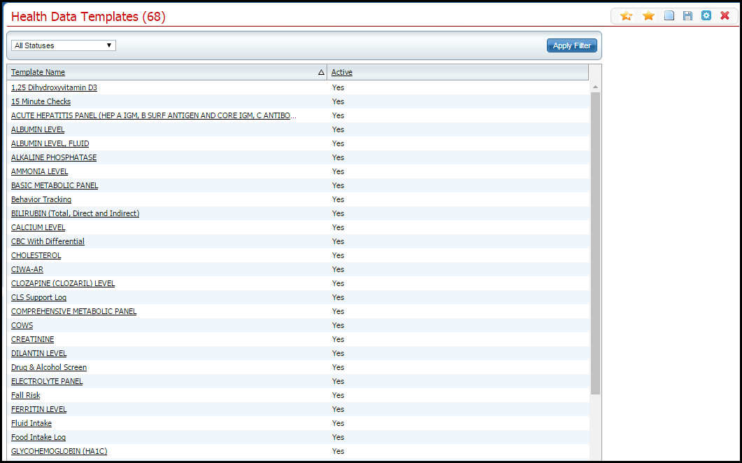 Use this task to add a Health Data Template to SmartCare. Before you add a Health Data Template, first, add Health Data Elements and Health Data Sub-Templates that you will use to construct the Health Data Template.