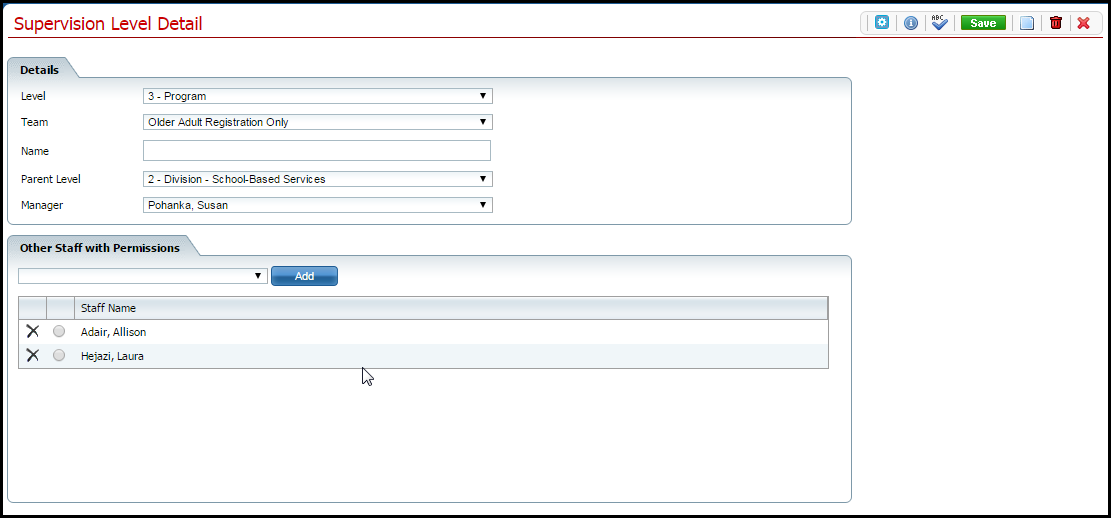 If there are staff who work in a program and report to the manager entered for the Program, add the staff to the Program in Supervision Hierarchy.